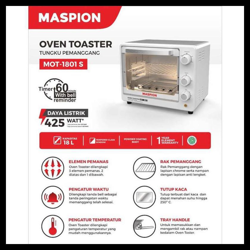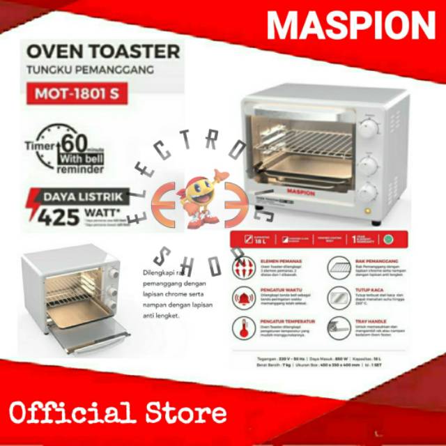 Jual electric oven maspion mot 1801 s maspion oven toaster mot1801s 18 l dengan harga rp490 000 dari toko online bt electronic jakarta selatan. Maspion mot 1801 s oven toaster rp465 000 rp500 000 7 jakarta 1 20 penawaran lain dimulai dari rp466 500. Maspion mot 1801 s oven toaster. Maspion mot 2502bs oven toaster 25 l rp1 150 000 rp1 360 000 15 jakarta tambah ke bag.
