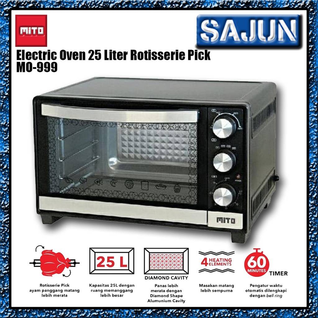 Oven listrik mito mo 888 kapasitas 33 liter full body stainless steel. Lapis legit 2 loyang dapat dipanggang secara berdampingan sehingga waktu memanggang jauh lebih cepat. Sumber rejeki silahkan membaca deskripsi produk kami terlebih dahulu karena sebagian gambar hanyalah alat bantu untuk memastikan ketersediaan stock silahkan hubungi admin kami pilihan produk lainnya bisa di cek di katalog kami lainnya d happy shopping mitochiba oven listrik jumbo electric oven 25 l rendah watt mo 999 merk mitochiba kapasitas 25 liter ukuran. Selamat datang di ud.