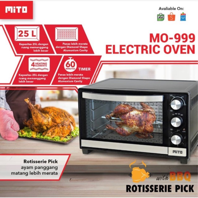 Mitochiba mo 888 fantasy oven listrik 33 l rp 1 189 900. Unboxing oven listrik 30 liter oke sih tapi sekarang udah di. Saat membelinya pun anda akan mendapatkan sepaket rotisserie pick yang berguna untuk memanggang ayam utuh dan aneka daging lainnya secara memutar. Mixer roti standing mixer mito mixer low.