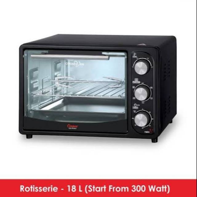 Palembang lits electronics 2 tambah ke wishlist. Cosmos co 9918 r oven 18 l. Oven cosmos berkapasitas 18 liter untuk memanggang berbagai macam masakan seperti kue kering ayam panggang dll. Oven listrik berkapasitas 18 l bbq rotisserie pick pemanggang berputar otomatis elemen pemanas stainless steel dengan 6 pilihan elemen pemanas mode stay on dilengkapi 2 rak rak kue rak besi pengatur waktu hingga 60 menit.