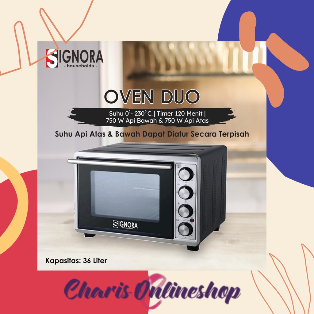 Oven duo signora 36lt hadiah langsung. Oven duo oven duo 36lt. 60 x 38 x 34 cm fungsi. 750 watt top 750 watt down kapasitas.