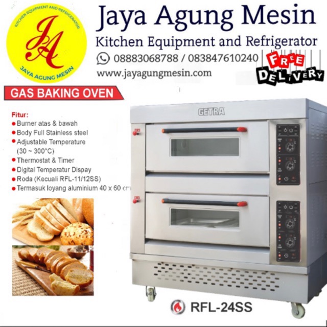Kami menyediakan mesin oven baking gas sebagai alat untuk mengoven bahan kue atau roti sehingga dapat menghasilkan kue atau roti yang merata dan lembut. Jual beli online aman dan nyaman hanya di tokopedia. Horizontal dough mixer getra whb 25 rp 8 912 500 00. Gas deck oven 1 deck 1 tray getra rfl 11ss.