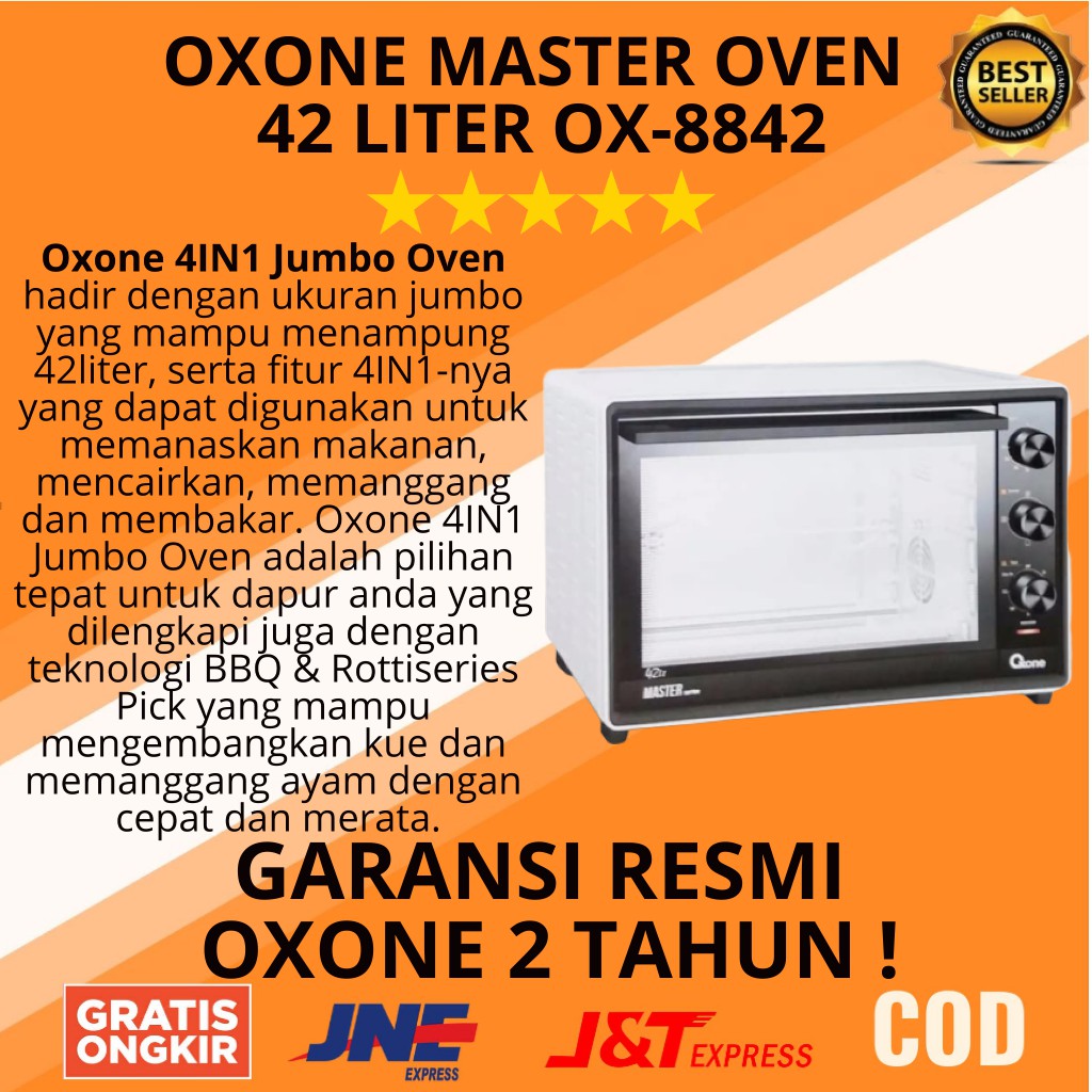 Oven listrik oxone ox 858br 4in 1 18liter kue dan bolrp1 120 000. Enam pilihan juga memudahkan anda saat hendak mengatur pencampuran adonan. Ada yang berukuran kecil sebesar 18 liter ada pula yang berukuran jumbo sebesar 28 liter. Oxone ox 8842 master pemanggang oven listrik 42 l dilengkapi dengan tombol temperatur kontrol dengan suhu maksimum 230c.