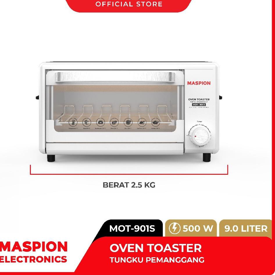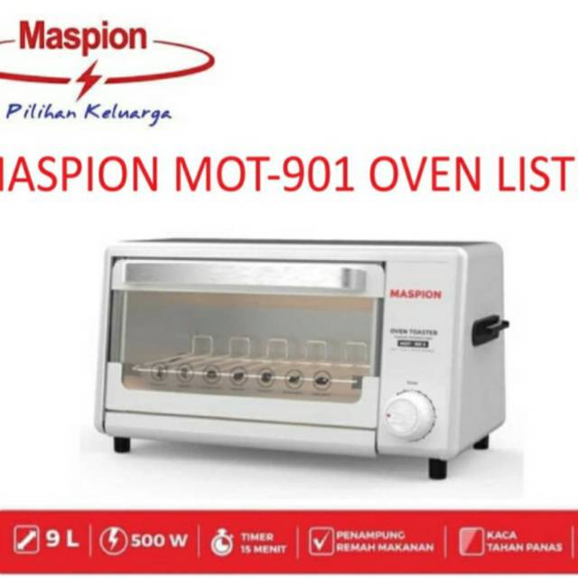 Oven toaster kirin 19liter kbo 190 kbo190 raw garansi resmi 400watt rp699 900 12. Oven microwave toaster maspion mot 901s mot 901 s 9 liter 500 rp249 650 2 kab. Selengkapnya tentang maspion oven mot 901 s oven toaster mot 901 s dengan pengaturan waktu timer hingga maksimum 15 menit cocok untuk hidangan yang memerlukan penyajian cepat. Pintu dan rak saat membuka pintu rak bergerak sehingga memudahkan saat memasukan dan mengeluarkan.