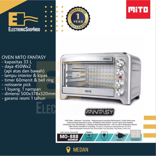 Mito mo 999 oven listrik. Saya cukup merekomendasikan oven listrik ini kepada anda yang saat ini lagi bingung mencari cari oven listrik apa yang murah dan bagus. Yang pertama adalah memperhatikan daya listrik dari oven sendiri. Saat membelinya pun anda akan mendapatkan sepaket rotisserie pick yang berguna untuk memanggang ayam utuh dan aneka daging lainnya secara memutar.