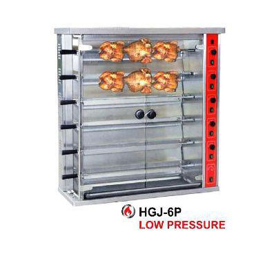 Mesin pemanggang gasalat pemanggang alternatifa. Ketika oven dinyalakan ayam akan memutar hingga proses pemasakan selesai. Tongkat tersebut akan berputar ketika oven beroperasi sehingga daging bisa terpanggang secara merata sampai matang. Mesin pemanggang ayam rotisseries berfungsi untuk memanggang ayam dengan cara memutar daging ayam sehingga ayam akan matang secara menyeluruh tidak akan ada bagian.