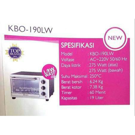 Spesifikasi Oven Listrik Kirin Kbo 190lw