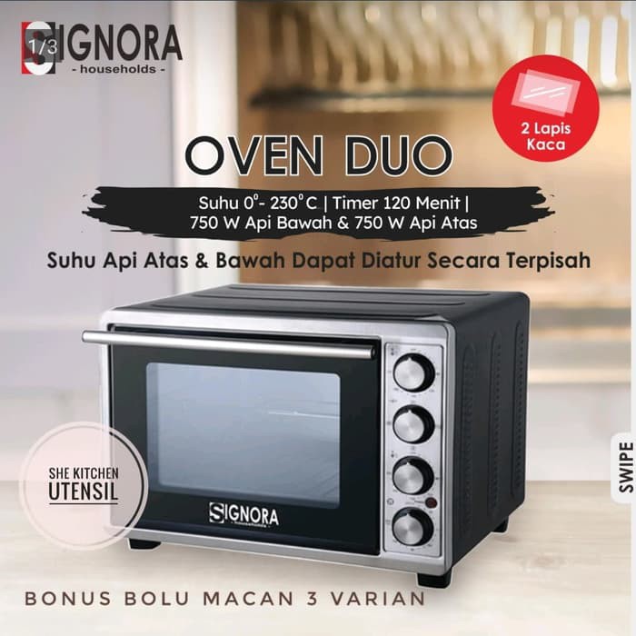 Oven baru dari signora yang mungil dan cantik cocok untuk pemula atau yang menginginkan oven kecil. 35 x 30 5 cm timer. Harga oven signora paling sering dicari dipencarian google dan terlaris tahun ini harga oven signora royal oven duo signora oven gas signora cara menggunakan oven listrik signora spesifikasi oven duo signora oven signora review review oven signora duo oven madame signora. 600w elemen atas 500w elemen bawah bisa diatur terpisah timer.